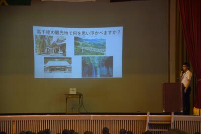 本日は、みなさんに「ウエルビーイング」についてお話をします。このウエルビーイングとは、「すべてが満たされた状態かつ継続性のある幸福」を意味します。ウエルビーイングが指す「すべてが満たされた状態」というのは、「快適な環境」とも言えると思います。地域の方々から、「高千穂町の宝」と言われているみなさんは、様々な場面で、多くの方々に感動を与え、幸せにしてくれました。なかなかできることではありませんが、みなさんにはそれができるのです。だから周囲の方々はとても居心地がよいのだと思います。