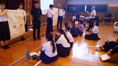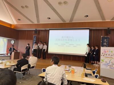 11月5日(水)に五ヶ瀬中等教育学校にて、高千穂高校1年生、五ヶ瀬中学校全校生徒、五ヶ瀬中等教育学校3,4年生、そして本校の3年生が一堂に会し、「価値創造フォーラム」が開催されました。目的は、GIAHS地域の豊かな自然・文化を再発見し、その魅力を学ぶとともに、参加者同士の対話やワークショップを通じて、この地域ならではの新たな価値を共に想像することを目指すことです。内容は、各学校の課題研究の発表、そして、GIAHS地域の魅力についてのワークショップなどでした。発表では、本校生徒は流域治水班が今まで調査・体験したり、まとめてきたりしたことを発表しました。ワークショップでは、それぞれ住んでいるところの魅力を五ヶ瀬の中高生や高千穂高校生徒と伝えたり聞いたりしました。新たに気付いたこと、再確認できたことなど、多くの学びがあったフォーラムでした。
