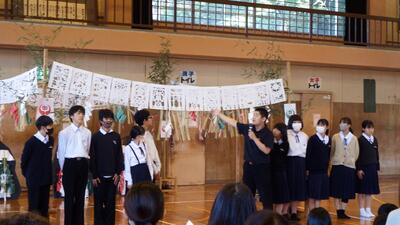 さて、今日から3学期がスタートしました。気温マイナス4度という厳しい寒さにも負けず元気に登校する生徒たちを見て、安心したところです。大清掃の後の始業式は2学期の終業式同様、オンラインで実施しました。最初に被災された方々への黙祷を捧げたのち、各代表の生徒が三学期の抱負を発表してくれましたので、紹介します。