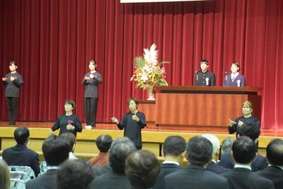 町民の集いにて高千穂中生が町民憲章朗唱と手話で出演!