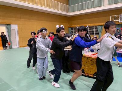 11月3日(月)に高千穂町内にて小学生以下を対象としたハロウィンウォークが開催され、本校生徒49名がボランティアとして参加しました。仕事内容としては、子どもたちへのウォーキング内容の説明やウォーキングガイド、交通誘導などです。中学生の協力が非常に助かったというお声もいただいております。本校生徒にとって小学生のサポートをさせてもらったことは、楽しみながらも貴重な経験になったと思います。また、今後開催されるときに、今回の中学生の姿が小学生にとって印象に残り、そのことが中学生になったときにボランティアとして参加するきっかけになるようなつながりができるといいなあと思います。