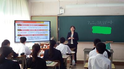 11月14日(金)に2年生が企業との意見交換会を実施しました。お越しいただいた企業は、株式会社興電舎様、株式会社桝元様、フェニックスリゾート株式会社様です。仕事内容等に加え、理念などについてもお話しいただき、生徒からも多くの質問を投げかけました。前週に職場体験を行っている中で、今までと違う職業観があり、多くの学びがありました。大変お忙しい中、ご講話いただきました企業の皆様、ありがとうございました。