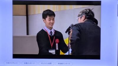 「みんないつもとは違い真剣な顔で臨んでいたり、寒いのにもかかわらず一生懸命走りきっていてすごいと思いました。僕たちのクラスは駅伝の部で優勝することができました。ですが、僕は順位やタイムがすべてではありません。一番大切なことはやっぱり“最後まであきらめないこと”だと私は思います。だから一位になれなくても最後まであきらめなければそれでいいと思います。みんな最後まであきらめずに走っていたためとても素晴らしい駅伝・ロードレース大会になりました。そしてこの大会でクラスの仲がさらに深まったことでしょう。このクラスで過ごす時間もあと少しです。だからこそ、このクラスで過ごす残り少ない時間を大切にしようと思いました。この大会で自分自身、気持ちの面でとても成長できました。来年も駅伝・ロードレース大会があるので最後まであきらめず全力で走りたいと思います。」