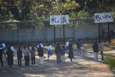 12月5日(金)の午後から、校内駅伝・ロードレース大会を開催しました。体育の授業、部活動、または自主練などにより身に付けてきた持久力を発揮する場です。自分の持っている力を発揮しようと、参加した全員が精いっぱい走りました。オーバーペースになった人もいたかもしれませんが、それもがんばろうとした証です。3年生は部活動を引退後に運動していない分、体力が落ちていることを感じた人もいたことでしょう。それでも3年生の意地を見せていました。学校の行事の中で一番苦しい行事かもしれません。しかし、仲間、先生、保護者、地域の方々から、これほど多くの応援をもらうこともありません。苦しいことがあっても支えてくれる人がいることにより乗り越えることができる!そのような経験ができた大会になったのではないでしょうか。これからの人生においても、そのようなことはたくさんあると思います。応援に来てくださった保護者、地域の皆様、寒い中ありがとうございました。