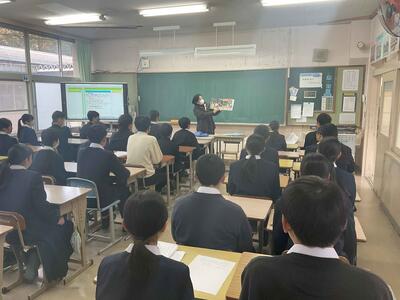 2月4日(水)に1年1組にて初任者の大平先生が学級活動の研究授業を行いました。委員会活動をより良くしていくための話し合いや発表をしました。多くの職員が参観した中で、生徒たちは一生懸命取り組みました。