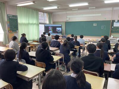 2月10日(火)に、県内の小中学校の教員が参加する研修「ひなたの学びフェス」にて、本校の「いじめ防止の取組」を生徒会3名がオンラインで発表しました。プレゼンの発表もさることながら、会場からの質問にも的確に答え、参加された先生方からも多くの賛辞をいただきました。今回の件についての発表をさまざまなところで行ってきましたが、先生方向けに発信できたことは貴重な経験となりました。