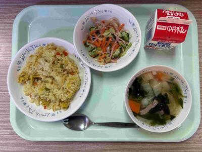 〈 減量わかめごはん 牛乳 焼きそば 中華サラダ 〉