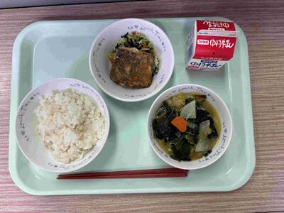 〈 麦ごはん 牛乳 煮魚・こんにゃく けんちん汁 〉