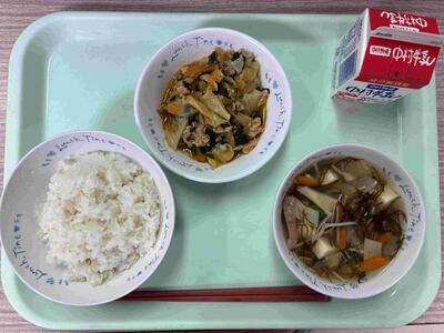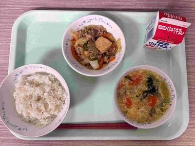 〈 麦ごはん 牛乳 回鍋肉 中華コーンスープ 〉