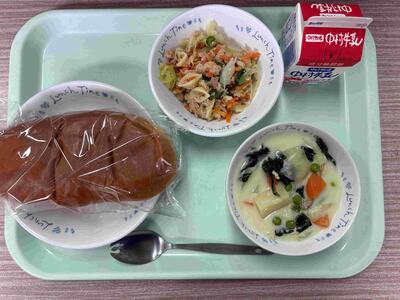 〈 黒糖パン 牛乳 クリームシチュー ツナサラダ 〉