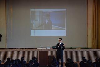 終業式の後に「中学生に伝えたいこと」として、ネットに関する説明を行いました。