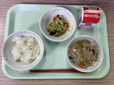 〈 麦ごはん 牛乳 麻婆春雨 中華和え 〉