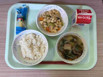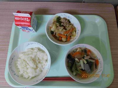 〈 麦ごはん 牛乳 回鍋肉 中華風スープ 〉