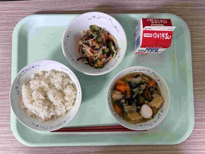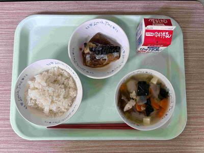 〈 麦ごはん 牛乳 煮魚・こんにゃく けんちん汁 〉