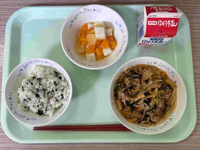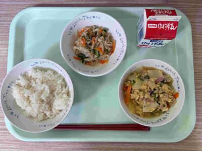 〈 麦ごはん 牛乳 厚揚げの中華煮 きくらげの酢の物 〉