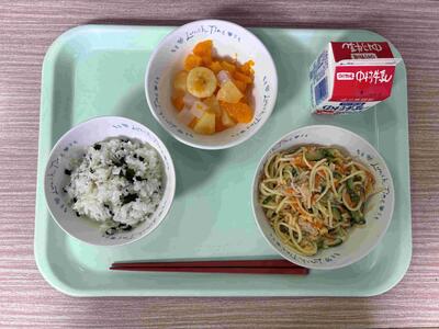 〈 減量わかめごはん 牛乳 冷やし中華 フルーツポンチ 〉
