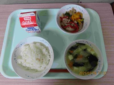 豚肉にはビタミンB1という栄養素が豊富に含まれています。ビタミンB1は、糖質をエネルギーに変える働きをもっており、疲労回復につながります。日本人は主食としてお米を多く摂りますが、お米は糖質を含んでいるので豚肉と相性がいいのです。今日の給食には、お米も豚肉も使用しています。暑さで体が疲れないようにするためにも、給食を残さず食べましょう。