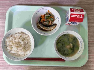 今日は、なすについてのお話です。なすは夏から秋にかけておいしい野菜です。なすの紫色は、ポリフェノールの一種である「ナスニン」とよばれる色素が含まれています。ナスニンには、ブルーベリーの色素でもあり、目の疲れを癒やしたり、血管をきれいにしたりする働きがあります。今日の給食では、なすとひき肉を使ってトマト味のスパゲティにしています。なすが嫌いな人もいるかと思いますが、この機会に少しでも頑張って食べてみませんか?
