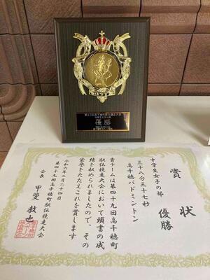 2月24日(土)に開催された「第49回高千穂町駅伝競走大会 中学生女子の部」において、高千穂バドミントンが見事1位になりました。この高千穂バドミントンは、学校部活動ではありませんが、社会体育として本校の中学生が多く所属し、日々練習に励んでいる団体であります。もちろん中体連も出場しています。日頃の体力づくりの成果が表れ、今後がますます期待できます。おめでとうございます。
