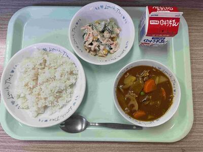 〈 秋味カレー 牛乳 大豆とツナのサラダ 〉