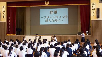 そこで、受賞作品を11月12日(水)に体育館にて全校生徒の前で発表してもらいました。二人とも実体験や調べた知識をもとにまとめており、県1位、全国大会出場にふさわしい発表でした。