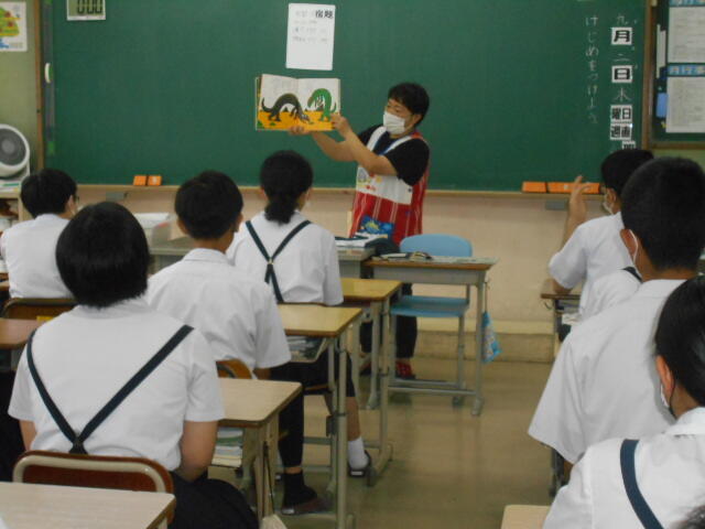 高千穂高校の2年生の清家さんがインターンシップとして高千穂中に