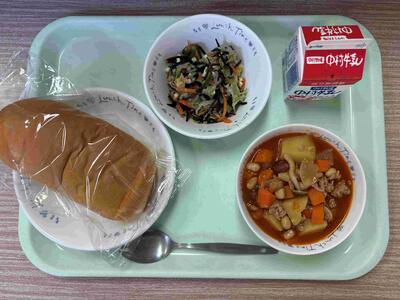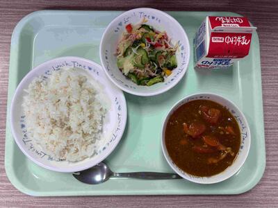 〈 トマトチキンカレー 牛乳 カラフルサラダ 〉