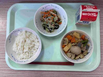〈 麦ごはん 牛乳 筑前煮 和風サラダ 〉