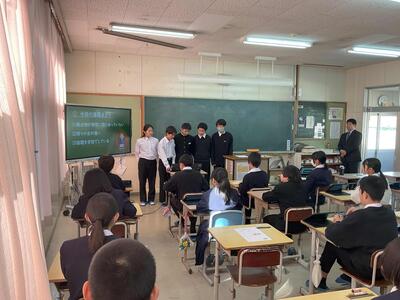 2月4日(水)に1年1組にて初任者の大平先生が学級活動の研究授業を行いました。委員会活動をより良くしていくための話し合いや発表をしました。多くの職員が参観した中で、生徒たちは一生懸命取り組みました。