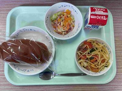〈 減量黒糖パン 牛乳 サマースパゲティ コールスロー 〉
