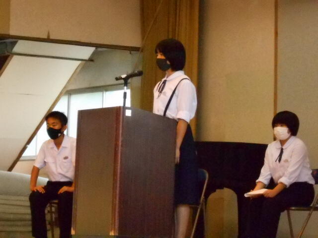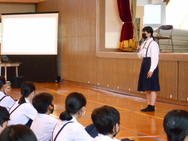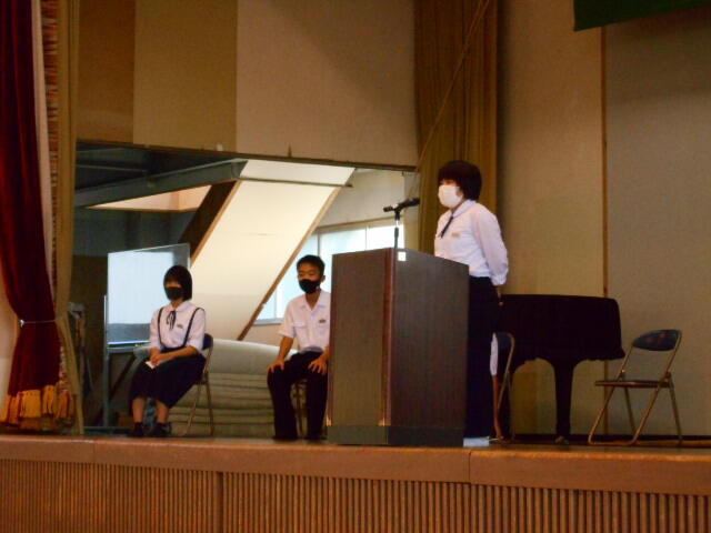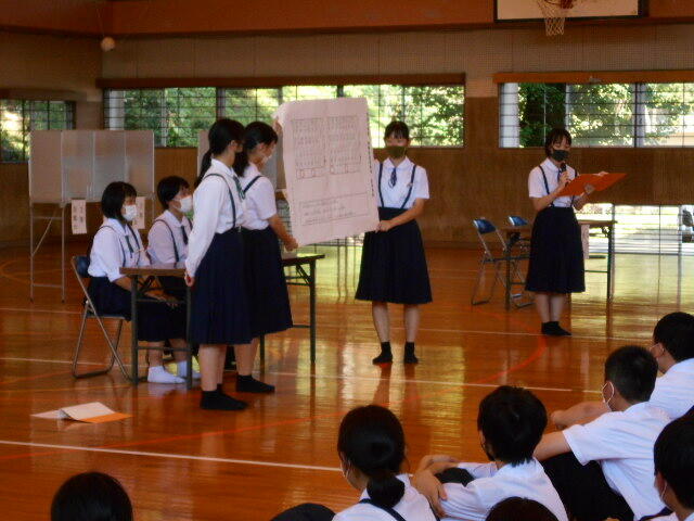 行いました。朝の学年集会では、3年生全員の前で発表しました。