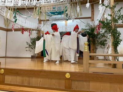 2月23日(月)に「第4回高千穂の夜神楽こども伝承者の集い」が高千穂神社神楽殿にて開催されました。各地区に伝わる夜神楽を小中高校生が、太鼓、笛の音に合わせて「神降ろし」「鎮守」など、16の演目を多くの観客の前で披露し、本校からは9名が参加しました。ユネスコ無形文化遺産の登録を目指している神楽が後世に引き継がれていくために、非常に大切な行事だと感じました。