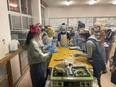 2月19日(木)に家庭教育学級が開催され、参加者17名がパン作りに挑戦しました。生徒も1名参加しましたが、パン作りは初めてとのこと。パンの他にもドーナツやピザも作りました。出来栄えは上々で大変おいしかったです。参加された皆様、そして準備計画してくださった役員の皆様、ありがとうございました。
