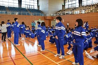 3月8日(金) 美化ハイクのあと、町の武道館で送別行事を行いました。