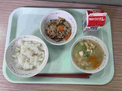 〈 麦ごはん 牛乳 千切大根の炒め煮 魚のみそ汁 〉