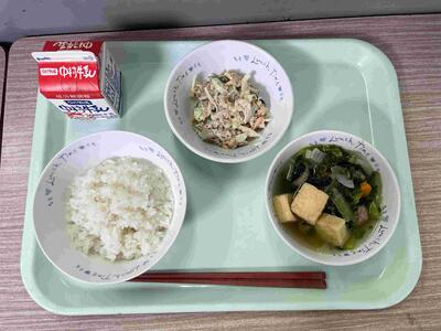 〈 麦ごはん 牛乳 豚肉のごまみそマヨネーズ 肉団子汁 〉