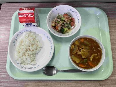 〈 チキンカレーライス 牛乳 トマトのフレッシュサラダ 〉
