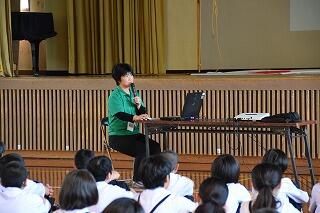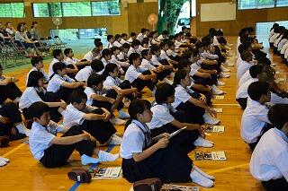 中学1年生のおよそ半数の生徒が、今、祖父母と生活しているそうです。生徒たちも真剣に話しを聴いていました。