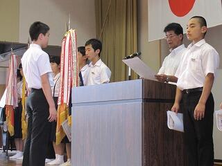 6月7日(水) 今週行われる西臼杵郡中学校体育大会に向けての選手推戴式を行いました。