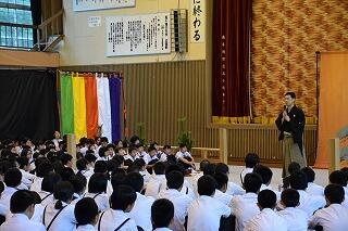 3年生は、これからオープンスクール参加など、高等学校について詳しく体験し進路選択への参考になることと思います。来ていただきました6校の先生方、生徒のお二人、本当にありがとうございました。