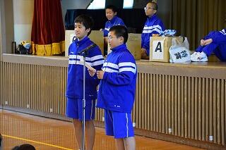 先日行われた西臼杵郡総合体育大会の結果、優勝及び準優勝をした団体競技の校納を行いました。