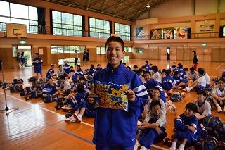 ご自分の学生時代の陸上競技の話から、スポーツを通じてたくましく育ってほしいという願いを込めた話をしました。