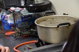 昼食です。体育館にシートを引いて、お弁当タイム。