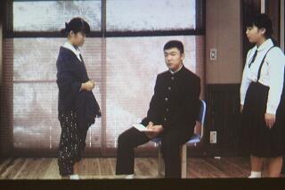 3年生による劇「きけ、わだつみのこえ」が、スクリーンに上映されました。
