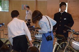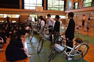 自転車通学の生徒が普段使用している自転車の点検を行いました。