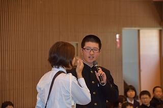 お互いの名刺交換をしながら、自分とは異なる学年の生徒と言葉を交わす体験です。