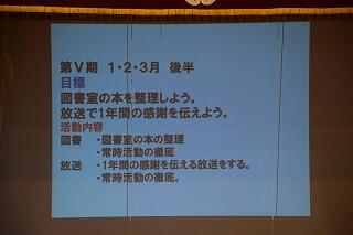 今回の生徒集会は、生徒会の専門委員会の発表が主な内容でした。