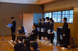 この立志式にあたり、一人一人の生徒が自分の生き方について改めて考えることができたようです。また記念行事の田崎氏の話や映画、バックステイの方々の歌と言葉も、これからの自分を見つめるとてもよい機会になったようです。