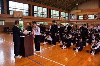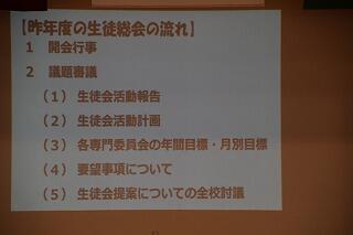 4月23日の生徒集会で、生徒総会に向けての説明が行われました。