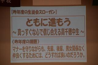 今年のスローガンも、高千穂中をよりよくしていくためのものを考えていきましょう。